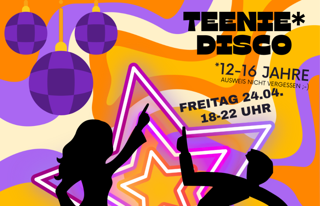 Der Jugendring Westsachsen veranstaltet die Zweite Teenie-Disco: diesmal im Vereinshaus „Zur Post“ in Oberlungwitz. Mit Mocktails und Musik! Freitag, 24.04.26 von 18 bis 22 Uhr im Vereinshaus „Zur Post“, Hofer Straße 36, 09353 Oberlungwitz Sicherheit steht für uns an erster Stelle.Darum haben wir für diese Veranstaltung einen Verhaltenskodex und ein SchutzRaumKonzept erstellt. Beides wird vor